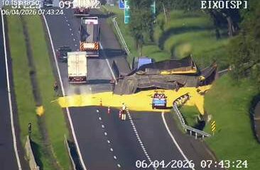 Eixo SP Uma carreta carregada com soja tombou na manhã desta segunda-feira (6) na Rodovia SP-225, na altura do km 92, no município de Itirapina. O...